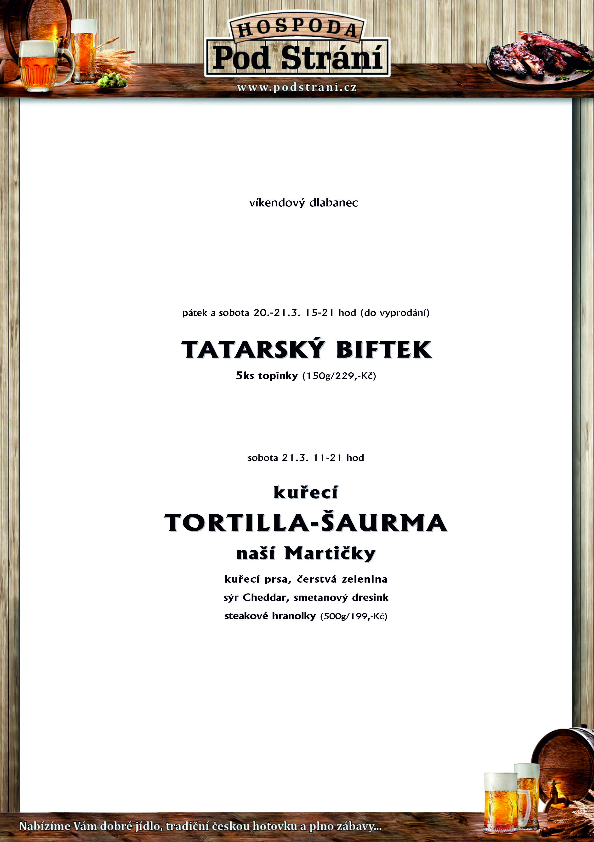 | pondělí – čtvrtek | 10:30 – 23:00 |