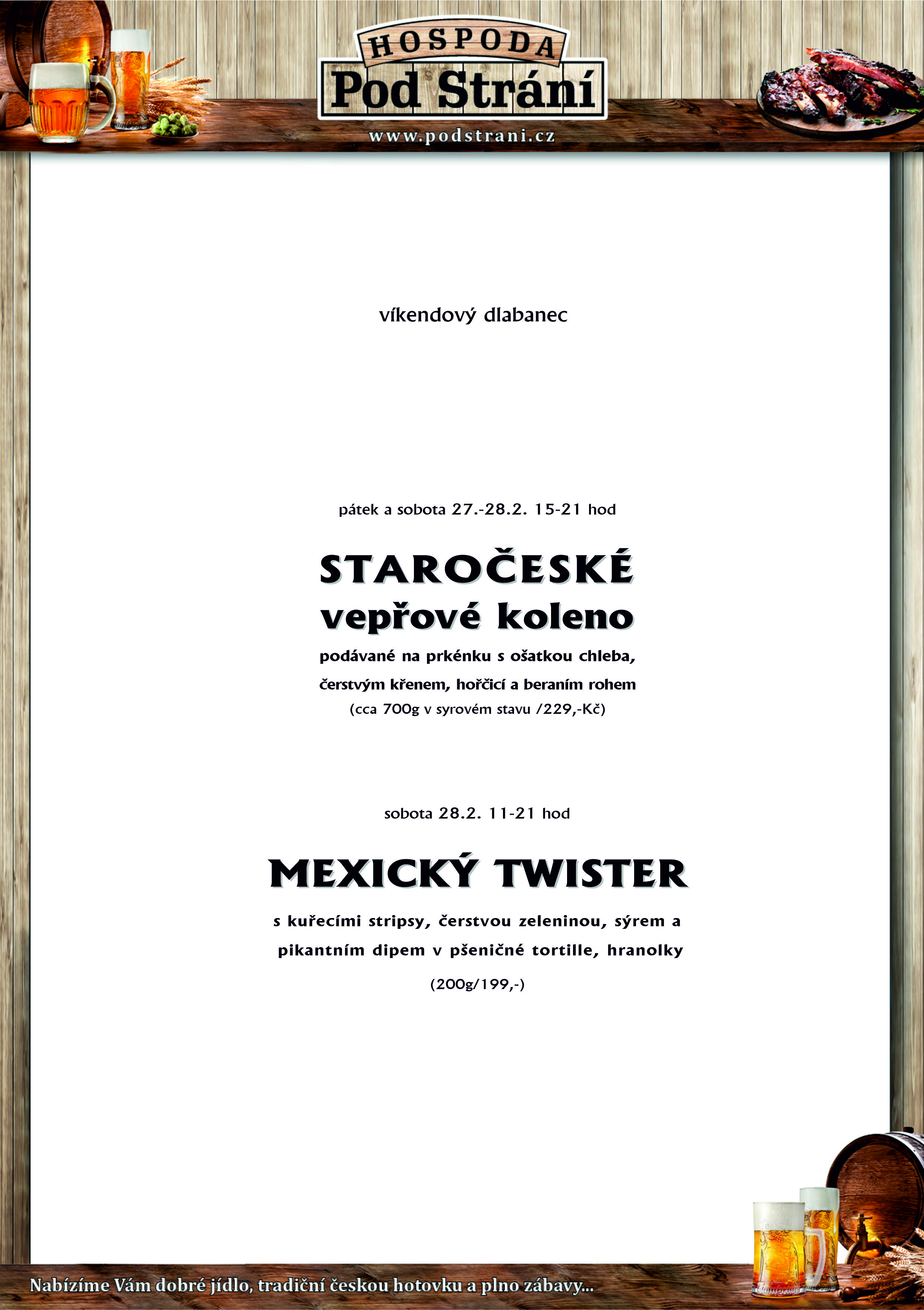 | pondělí – čtvrtek | 10:30 – 23:00 |